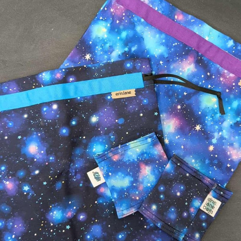 Everything that you receive will always be handmade! Every skein is designed and dyed by Destination Yarn in Ohio. Every bag is designed and sewn by Erin.Lane Bags in Tennessee. We will never inundate you with cheap plastic items or AI art.