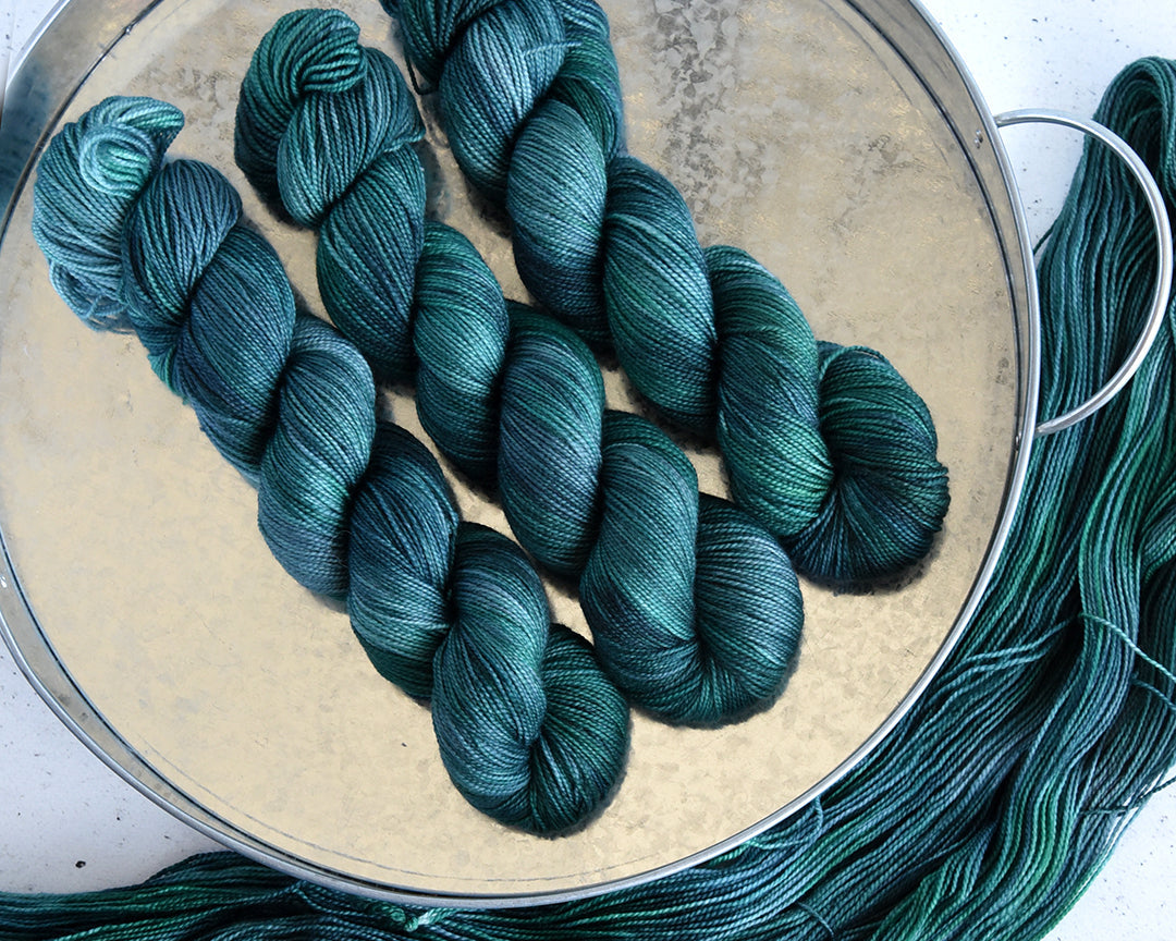 An exclusive colorway from Destination Yarn designed and hand dyed to match the destination