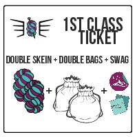 Two bags from Erin Lane Bags in a new, exclusive fabric featuring the sheeple visiting the destination. Every shipment you will receive a different type of bag perfect for a project with the coordinating yarn! Options will range from sock bags to sweaters and twofers! The Swag option will also receive a faux leather, commemorative project tag.