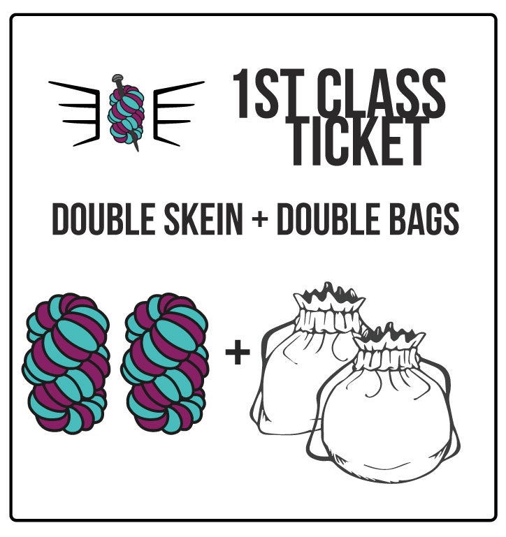 Treat yourself both extra yarn and extra bags for the ultimate luxury! One month you will receive TWO skeins of Destination Yarn, the next month TWO matching Erin.Lane Bags!