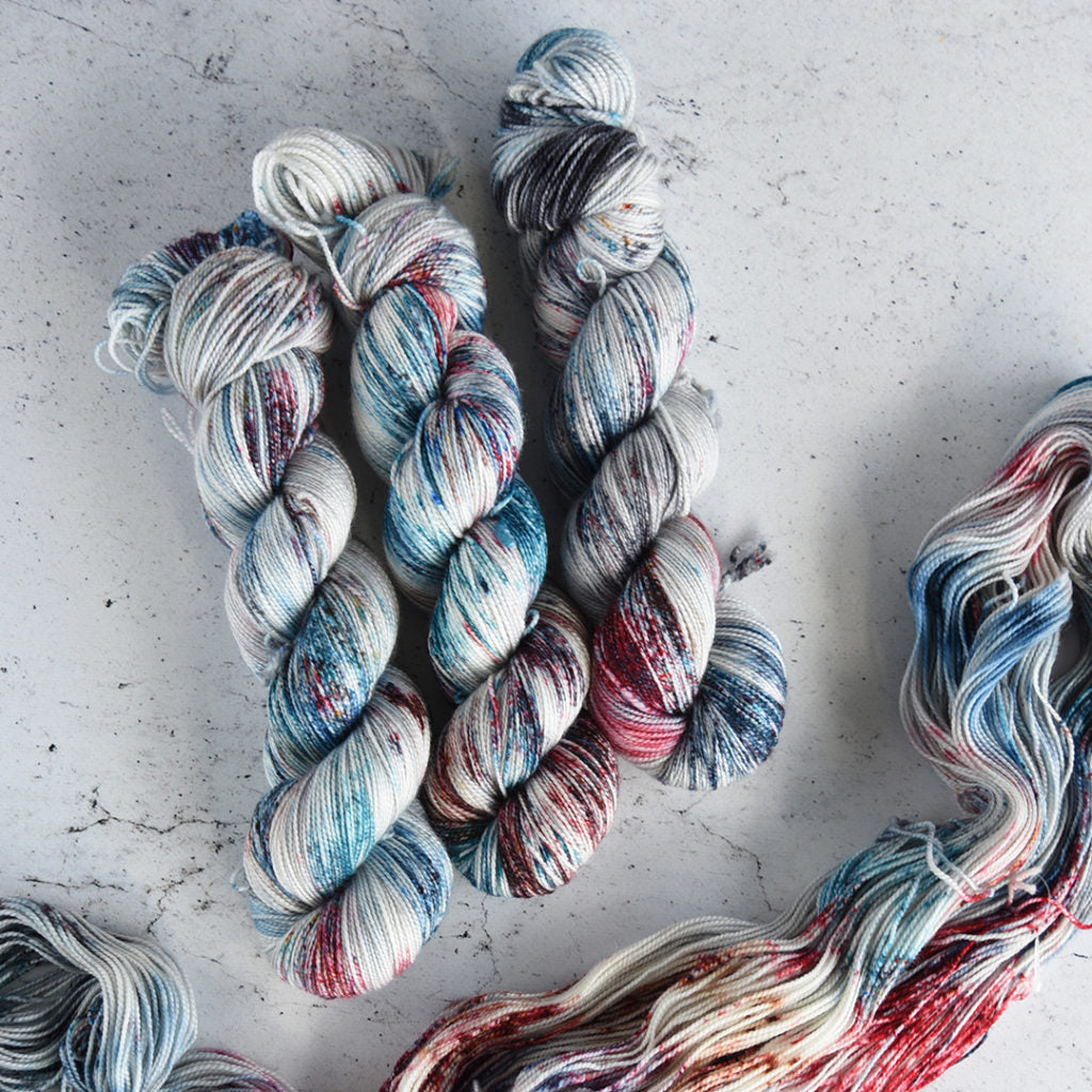 TWO skeins of an exclusive, new colorway from Destination Yarn hand dyed to match the destination. Every shipment you will receive a different base yarn with options ranging from fingering through worsted, merino through cashmere! The Swag option will also receive a matching, vinyl sticker inspired by the place we are travelling.